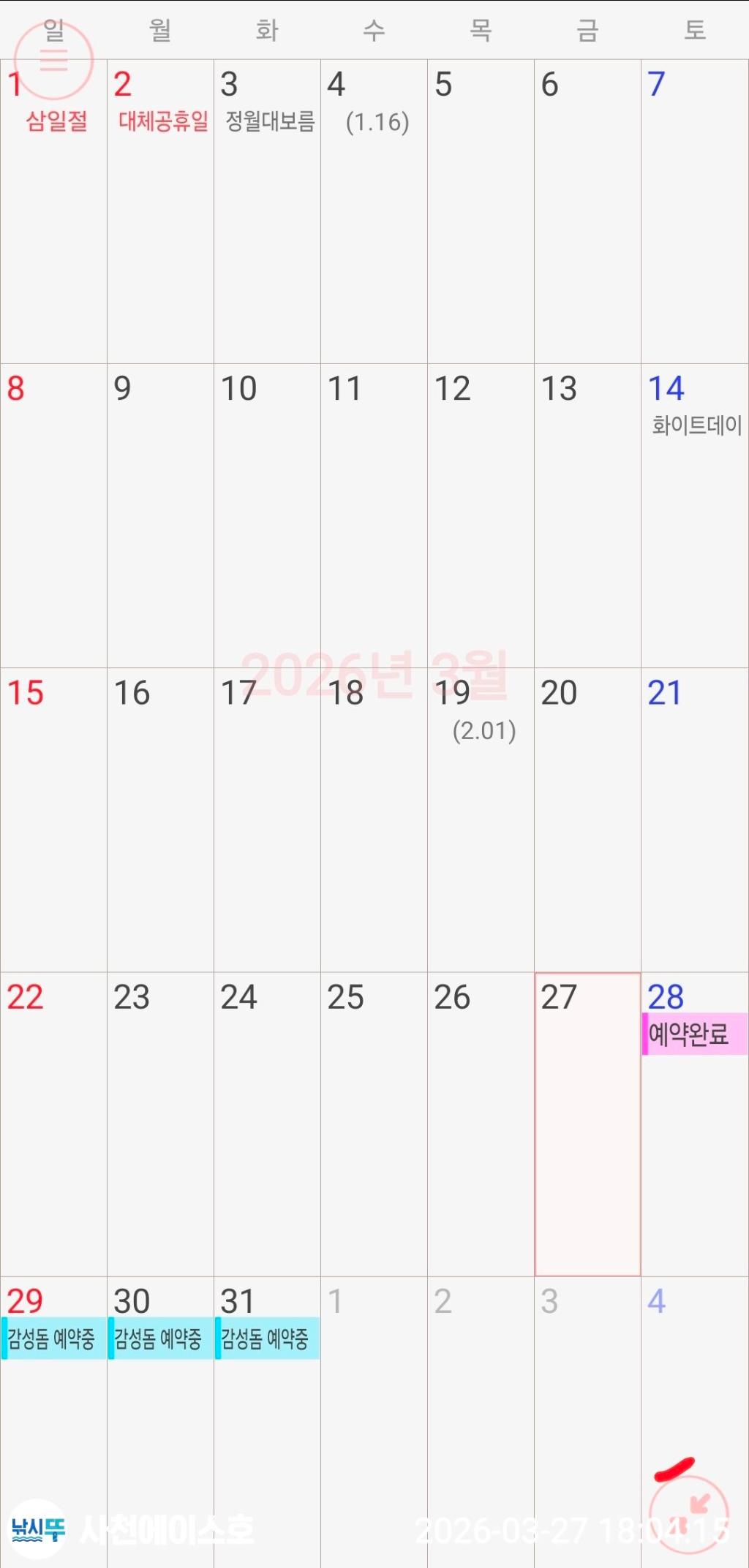 ■ 월중 비어 있는날엔(출조현황란에 예약중)