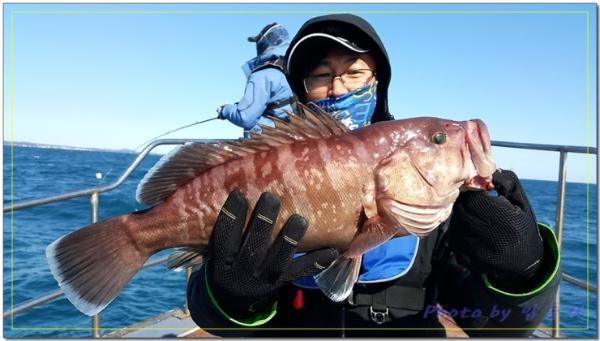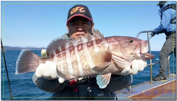 배앞쪽에서도 사이즈 좋은 능성어가 올라옵니다.